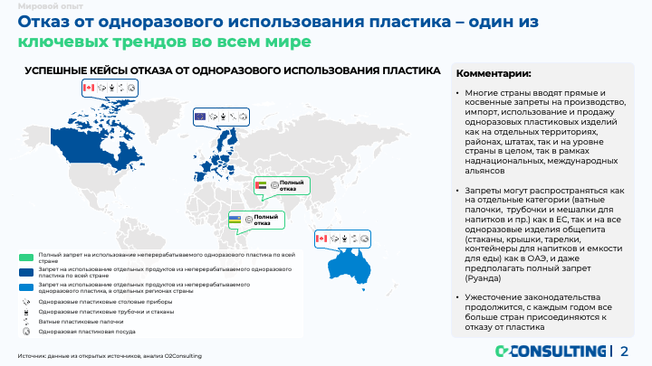 Страны по-разному стараются справляться с этой проблемой, чтобы снизить негативное воздействие на окружающую среду. В мире сейчас наблюдаются два тренда, направленные на то, чтобы снизить негативное воздействие пластика на окружающую среду.